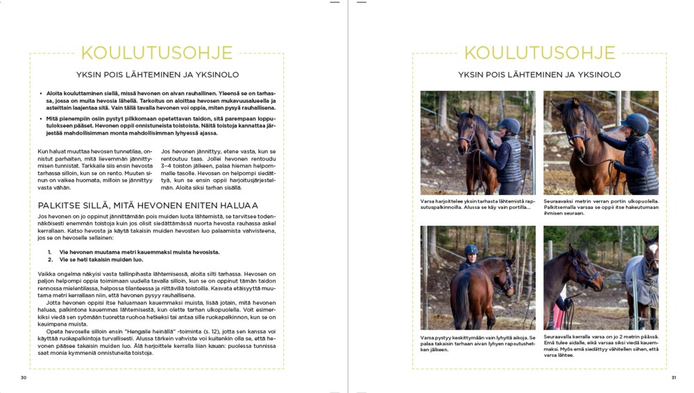 Kirja ilmestyi vuoden 2020 huhtikuussa ja sai kiittävät arvostelut ja palautteet heti. Kirjassa kerrotaan hevosen eleistä, ilmeistä ja käyttäytymisestä, pelon ja kivun tunnistamisesta, hevosen oppimisesta ja kouluttamisesta. Käytännön koulutusohjeissa löytyy vinkkejä niin yksinolon, pistämisen, lastauksen kuin rohkeammin uusiin asioihin suhtautumiseen.