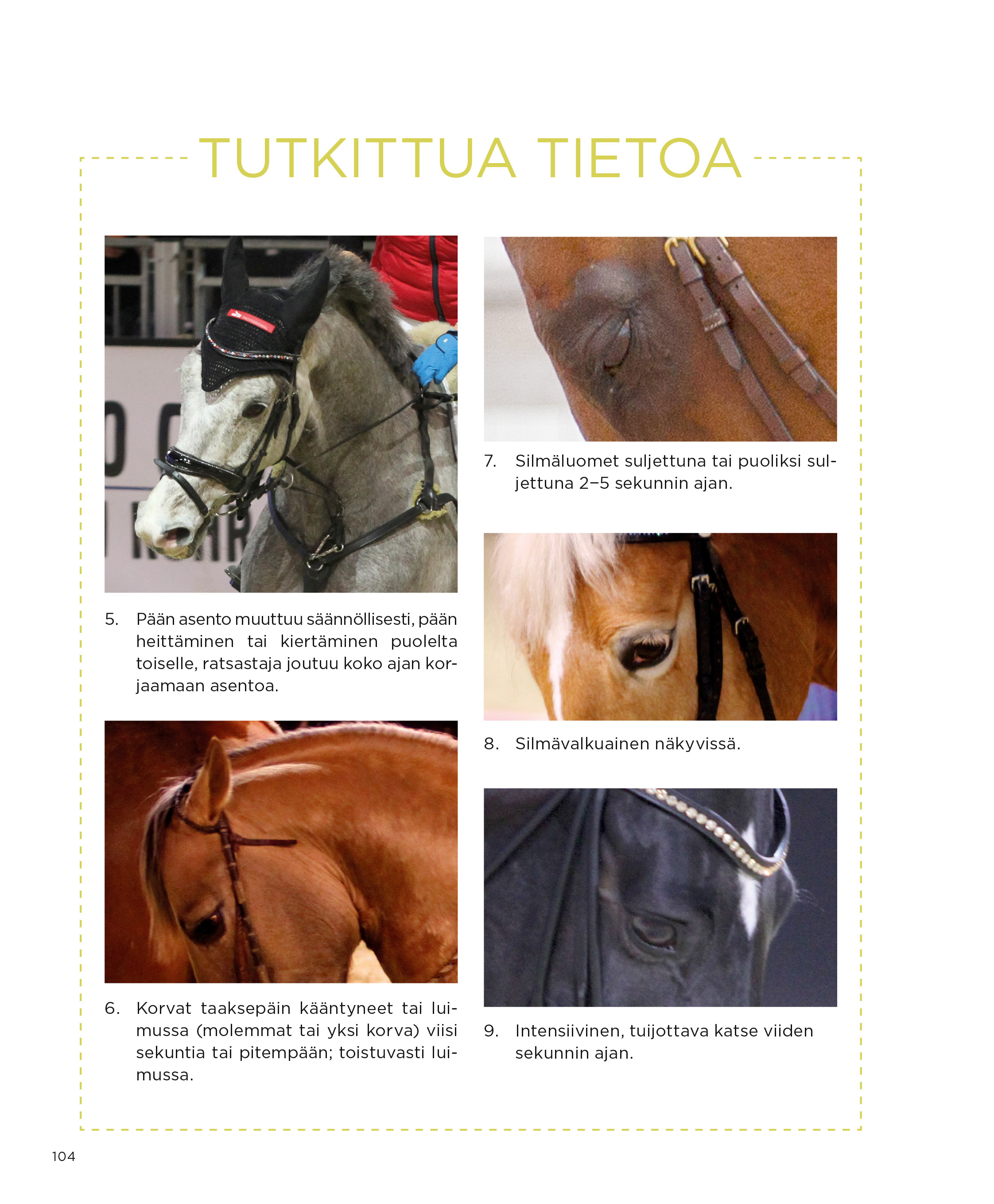 Hevosen silmien ilmeestä: https://www.frontiersin.org/articles/10.3389/fvets.2019.00154/full https://journals.plos.org/plosone/article?id=10.1371/journal.pone.0164017