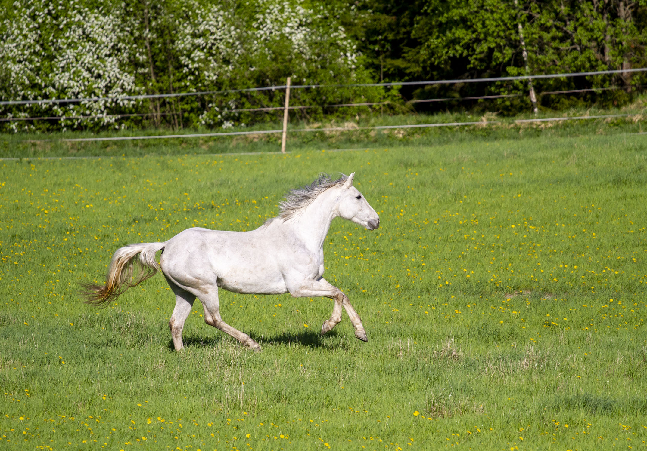 Bilden från vårtider i alla fall, trakehnerstoet Kuura vid betessläpp.